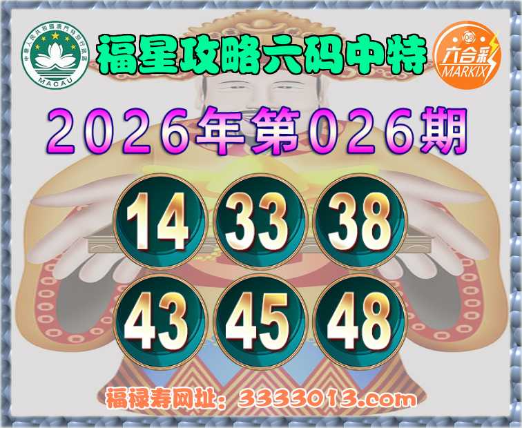 026期:【福星攻略】 🧏‍♀️六码中特🧏‍♀️【14.33.38.43.45.48】开:19