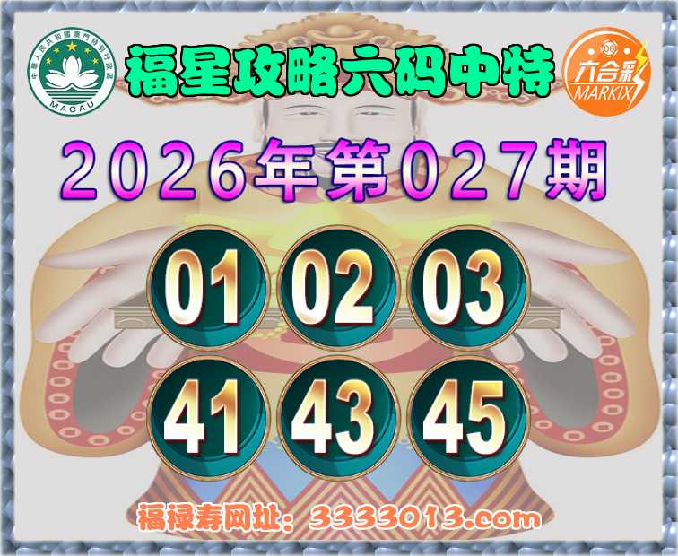 027期:【福星攻略】 🧏‍♀️六码中特🧏‍♀️【01.02.03.41.43.45】开:45