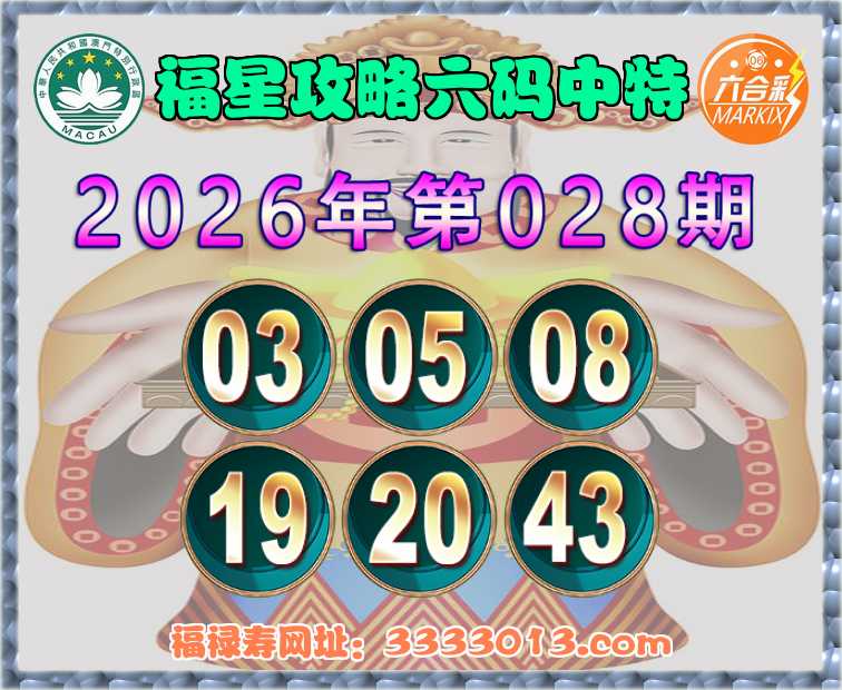 028期:【福星攻略】 🧏‍♀️六码中特🧏‍♀️【03.05.08.19.20.43】开:03