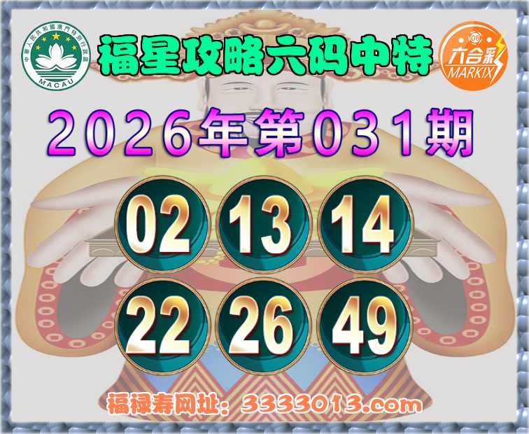031期:【福星攻略】 🧏‍♀️六码中特🧏‍♀️【02.13.14.22.26.49】开:26