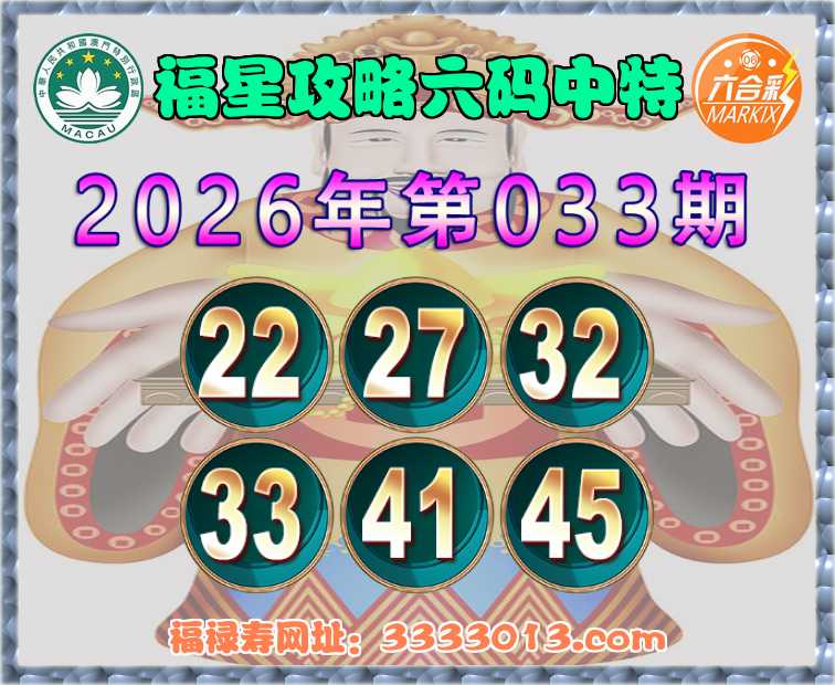 033期:【福星攻略】 🧏‍♀️六码中特🧏‍♀️【22.27.32.33.41.45】开:41