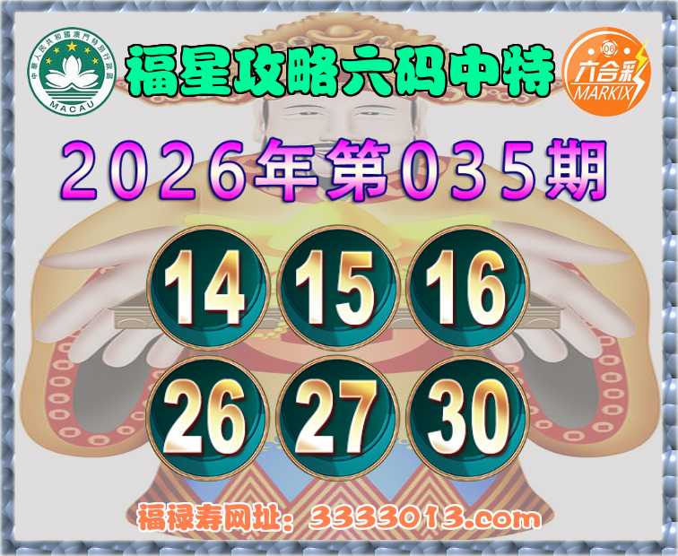 035期:【福星攻略】 🧏‍♀️六码中特🧏‍♀️【14.15.16.26.27.30】开:27
