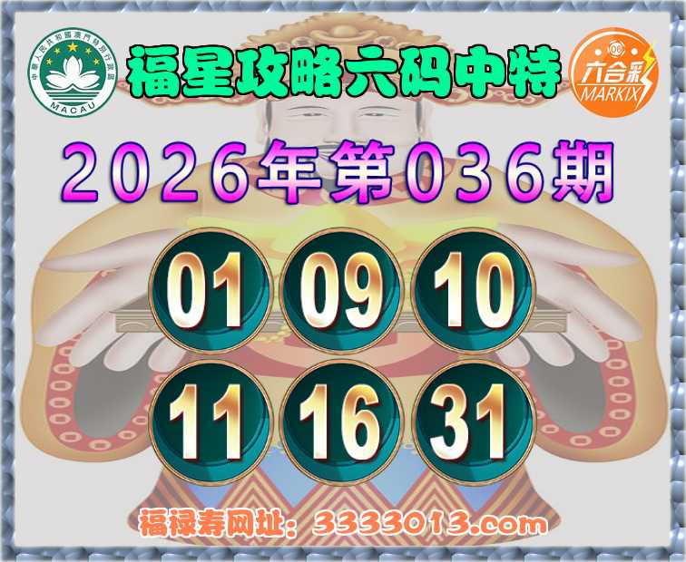 036期:【福星攻略】 🧏‍♀️六码中特🧏‍♀️【01.09.10.11.16.31】开:01