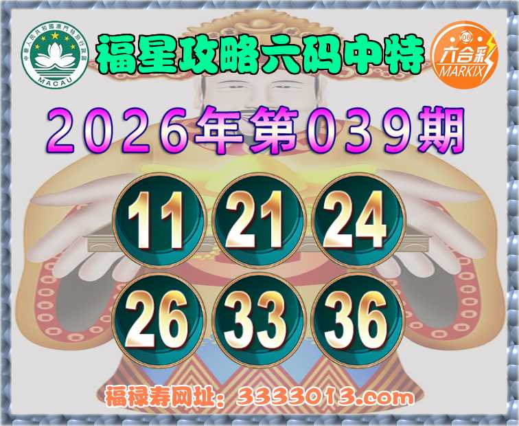 039期:【福星攻略】 🧏‍♀️六码中特🧏‍♀️【11.21.24.26.33.36】开:11